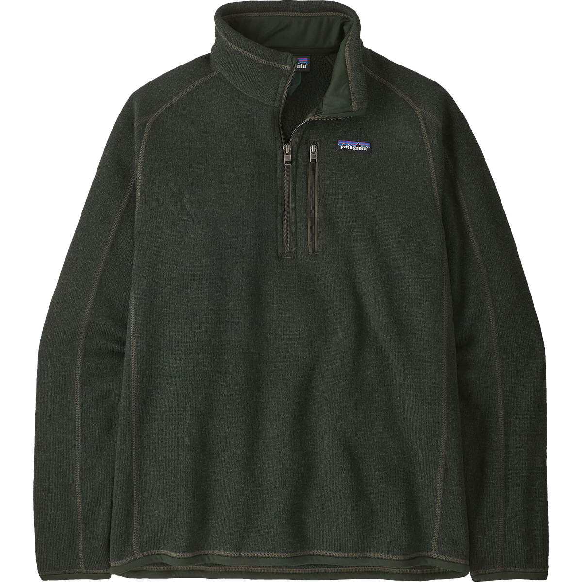 - Quarter-zip with a zip-through stand-up collar and a kissing-welt zipper garage