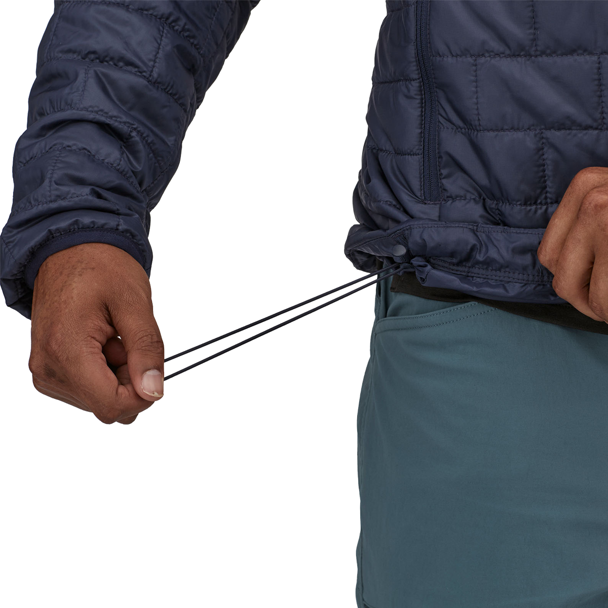 - Drawcord-adjustable drop-tail hem seals in warmth