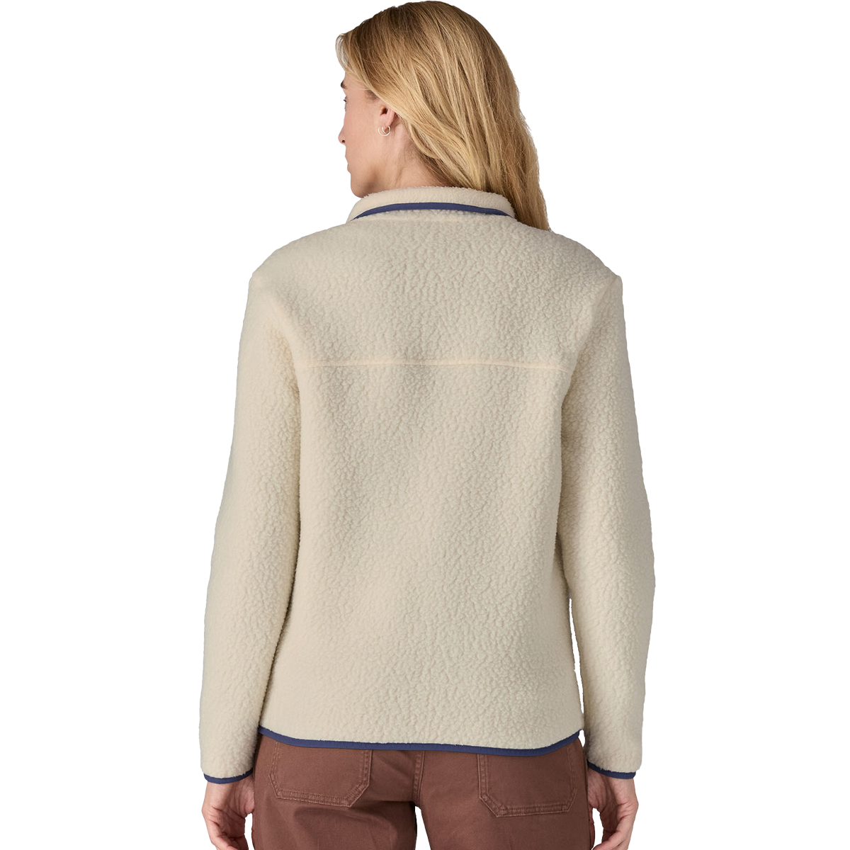 The Women's Retro Pile Jacket was influenced by Patagonia's fleece heritage and made modern with 100% recycled polyester double-sided shearling fleece. This jacket provides ultimate softness and warmth, featuring three mesh-lined pockets secure with Vislon zippers, one chest and two handwarmers, which have grosgrain zipper pulls. Front and back yokes complete the throwback aesthetic.