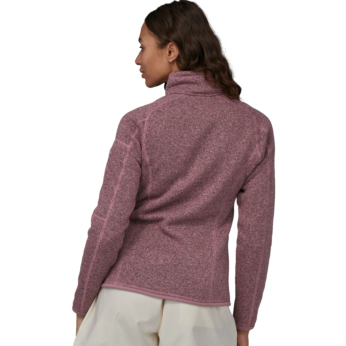 The easy-care Better Sweater Jacket has a wool-knit face, soft fleece interior and retains its shape and natural good looks after multiple washings. The 100% recycled polyester fabric is spun from heathered yarns and dyed with a low-impact process that significantly reduces the use of dyestuffs, energy and water compared to conventional dyeing methods. The full-front zip ends in a stand-up collar and zipper garage to prevent chafing at the chin. Front forward seams and rear princess seams deliver a flattering contoured shape that layers easily. Soft brushed tricot (100% recycled polyester) trims the wind flap, cuffs, hem and pockets, which include zippered handwarmers, two interior drop-ins and a zippered left-sleeve pocket. Fair Trade Certified sewn.